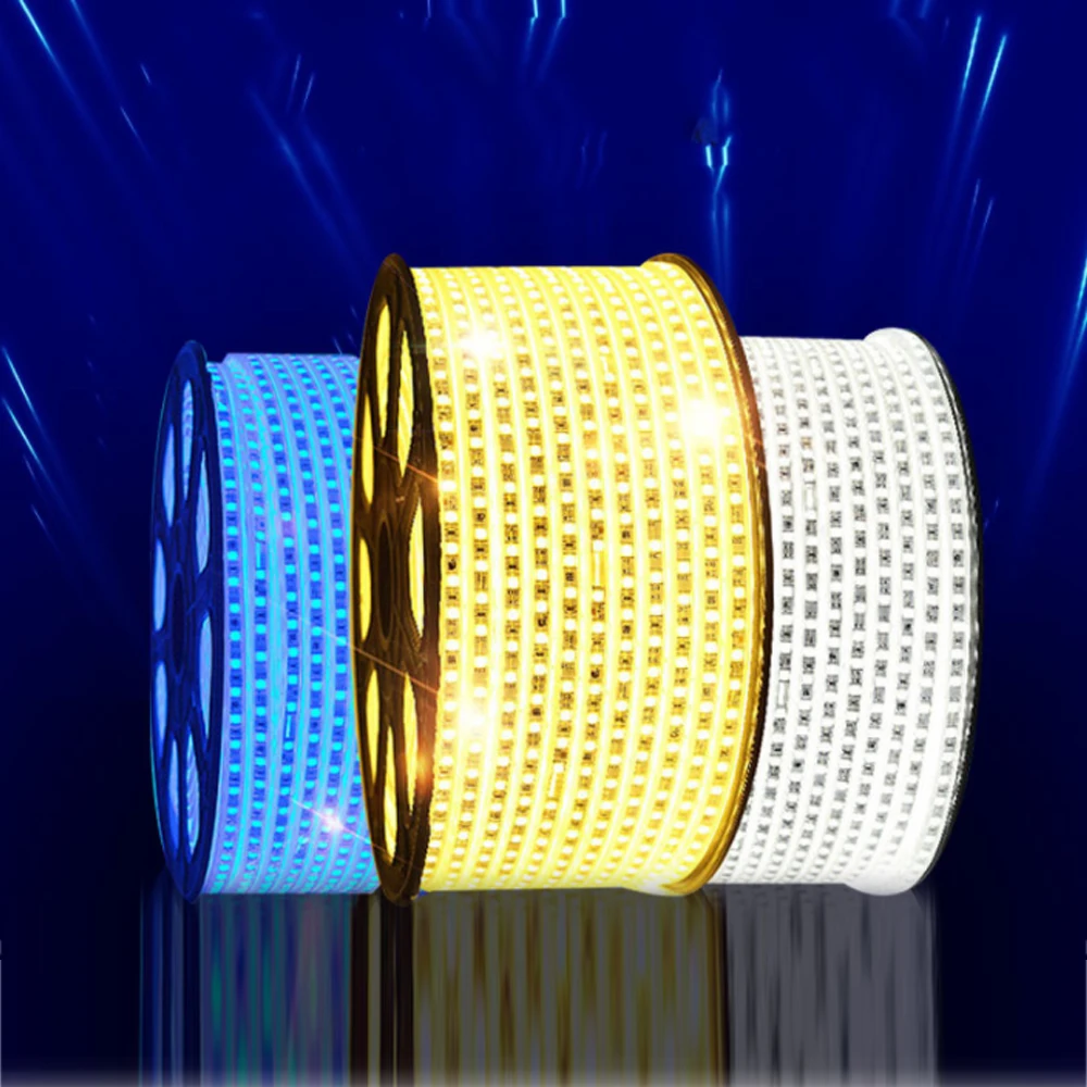 Светодиодная ленсветильник SMD 5050, 60 светодиодовм, гибкая светодиодная лента, 220 В переменного тока, 110 В, водонепроницаемая лента для улицы, белый, теплый, синий, зеленый, красный