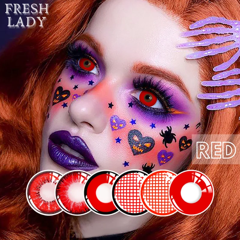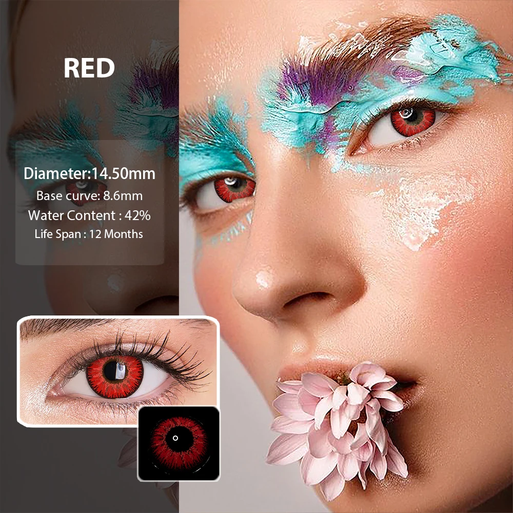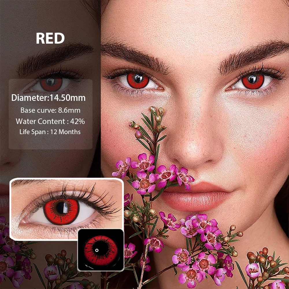 1 пара, прозрачные линзы красного цвета в стиле аниме, для макияжа
