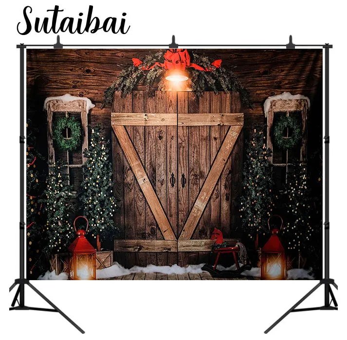 Фон для фотографий Mehofond рождественские двери сарая огни деревен...