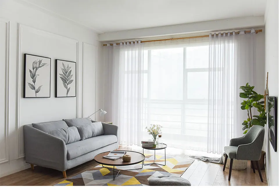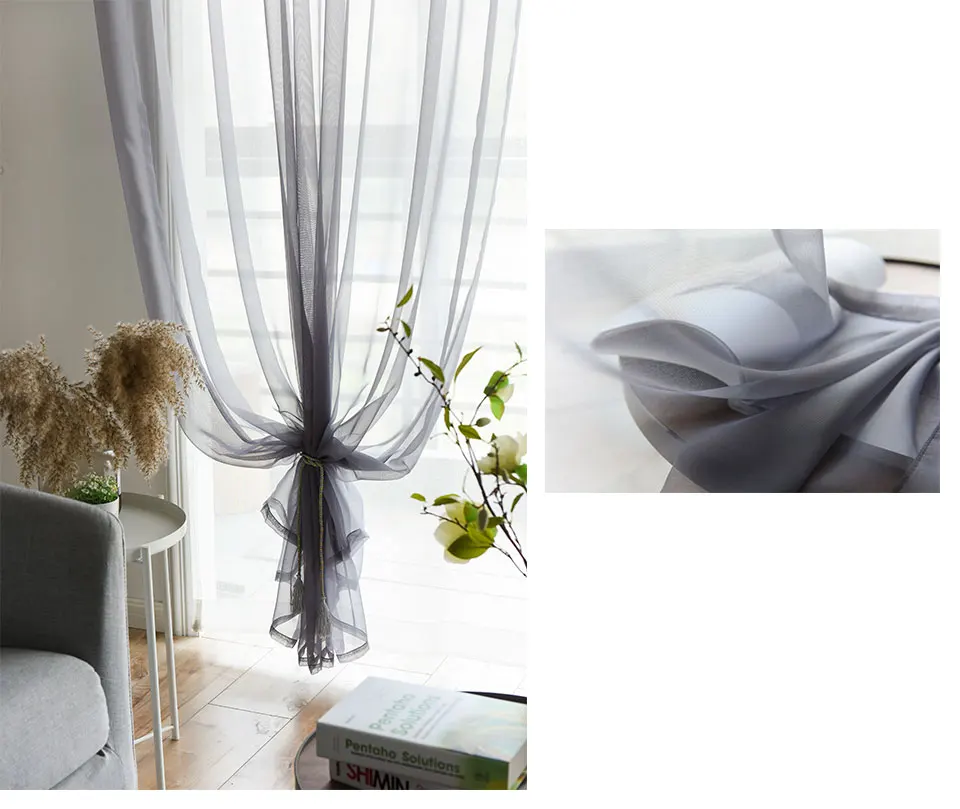 Однотонные современные тюлевые шторы из прозрачной вуали для гостин...