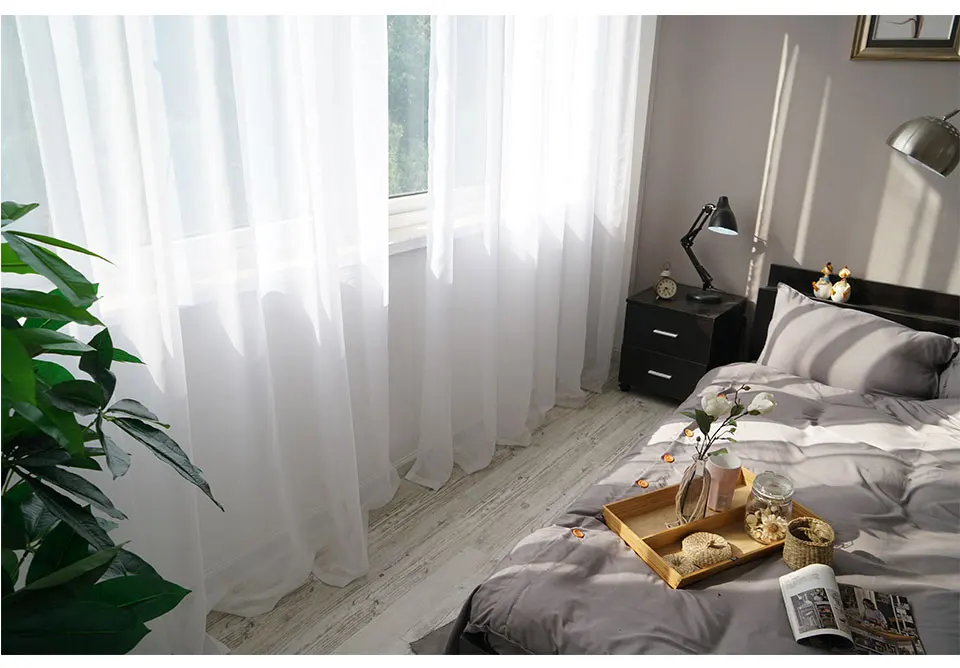 Занавеска из белого тюля s для спальни, прозрачная оконная занавеск...