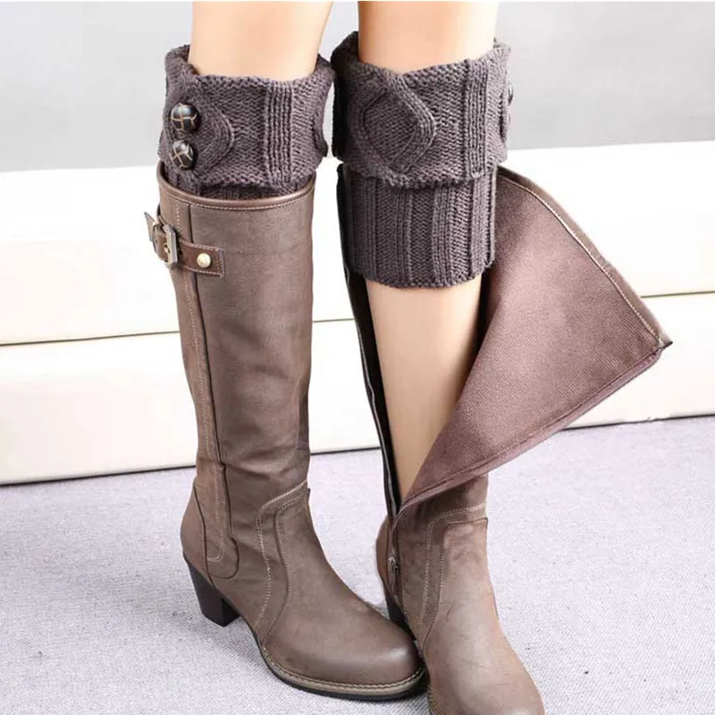 Женские вязаные гетры, 8 цветов, Короткие гетры с манжетами на пуго...