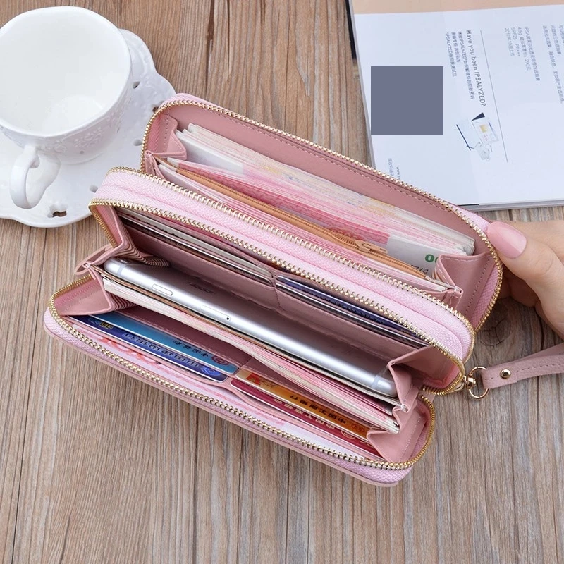 Кошелек женский на двойной молнии, длинный милый бумажник с кожаной кисточкой, бумажники на молнии, клатч