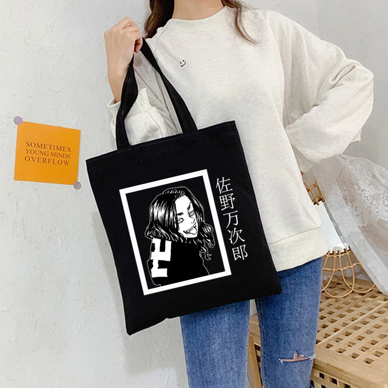 Сумка шоппер в стиле Харадзюку, черная винтажная Холщовая Сумка в стиле аниме Мстители Токио, Y2K, женская сумка на плечо в готическом панк-стиле