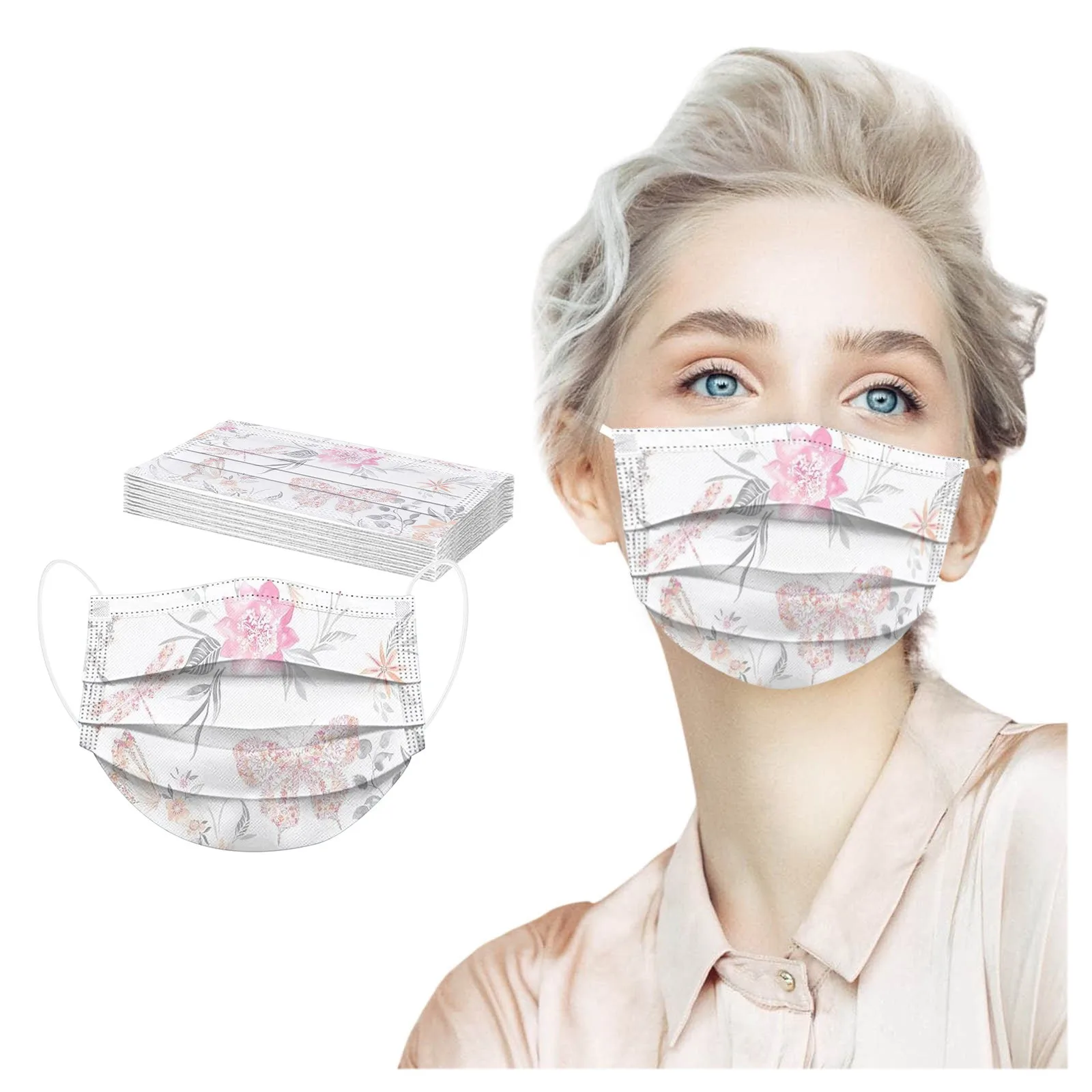 10 шт. взрослых ежедневная красивый кардиган, с цветочным принтом, 3-Слои одноразовая маска для лица