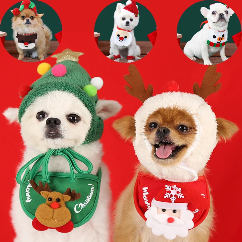 Рождественская шапка для домашних животных, милые оленьи рога, слюнявчик, разноцветная одежда для родных собак, нагрудник для щенков, товары для рождественского платья