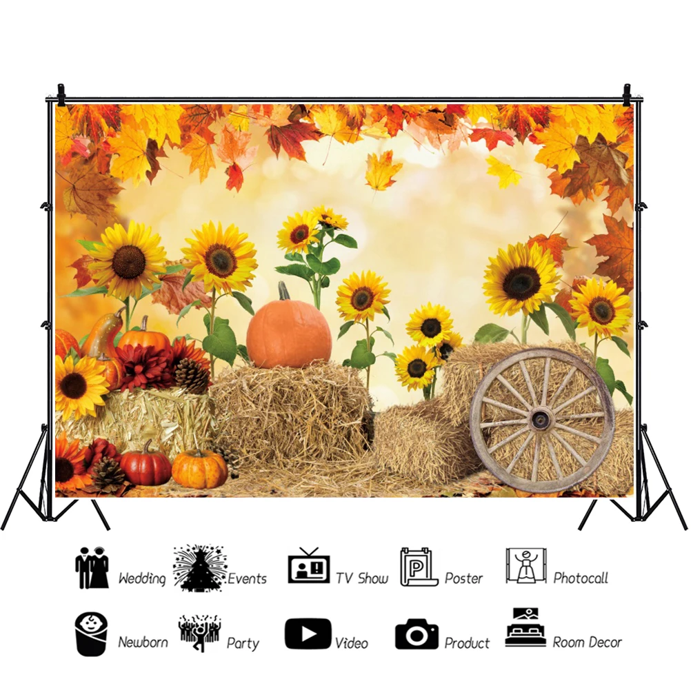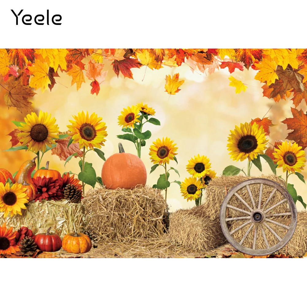 Осенний фон для фотосъемки Yeele со стогом сена подсолнухом детский портрет колесо Сцена фотография фон для фотостудии