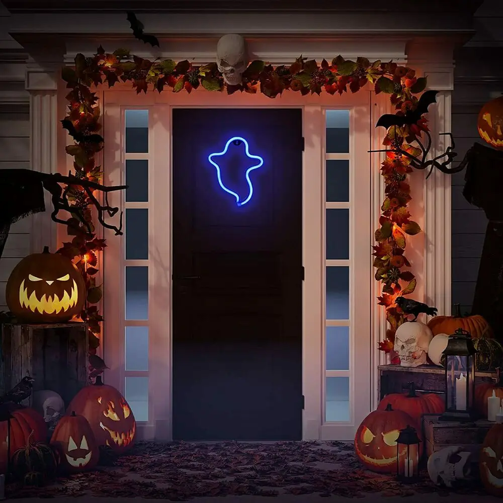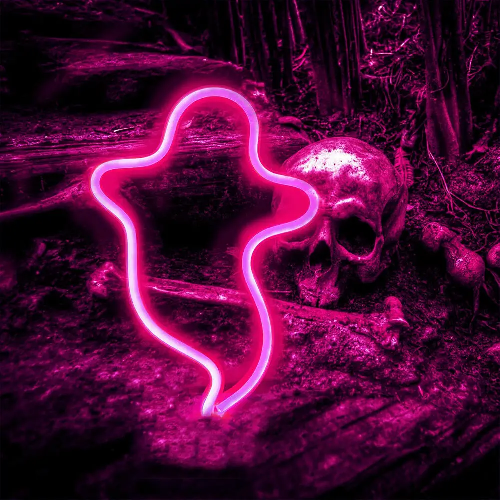 Новинка 2022, украшение для Хэллоуина, светодиодные неоновые знаки со страшными призраками и катушками, светильник для вечевечерние с привидениями, декоративная лампа для бара