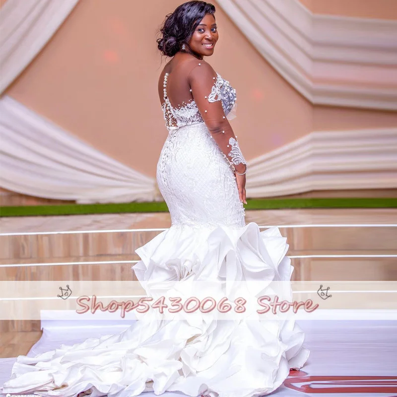 Роскошное Свадебное платье KapokDressy с оборками и низом Русалка Прозрачный вырез жемчуг атласное свадебное платье на пуговицах сзади платье для невесты