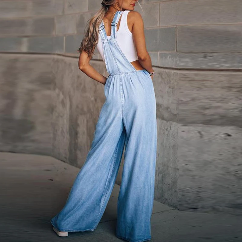 Комбинезон женский джинсовый с широкими штанинами, Модный повседнев...