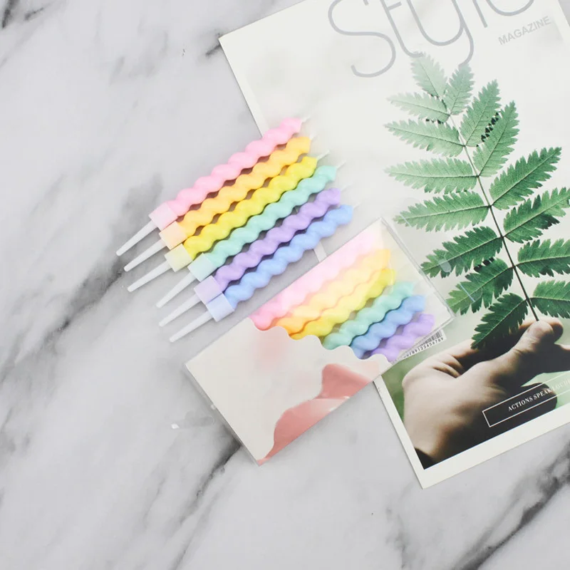 6 шт.пакет, цветные свечи для торта с изгибом, безопасное пламя, де...