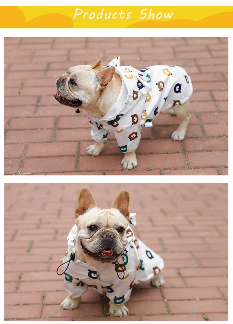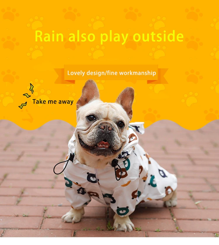 Дождевик, водонепроницаемая куртка для собак, одежда для больших и средних собак, с милым рисунком медведя, французского бульдога, пуделя, бишона корги