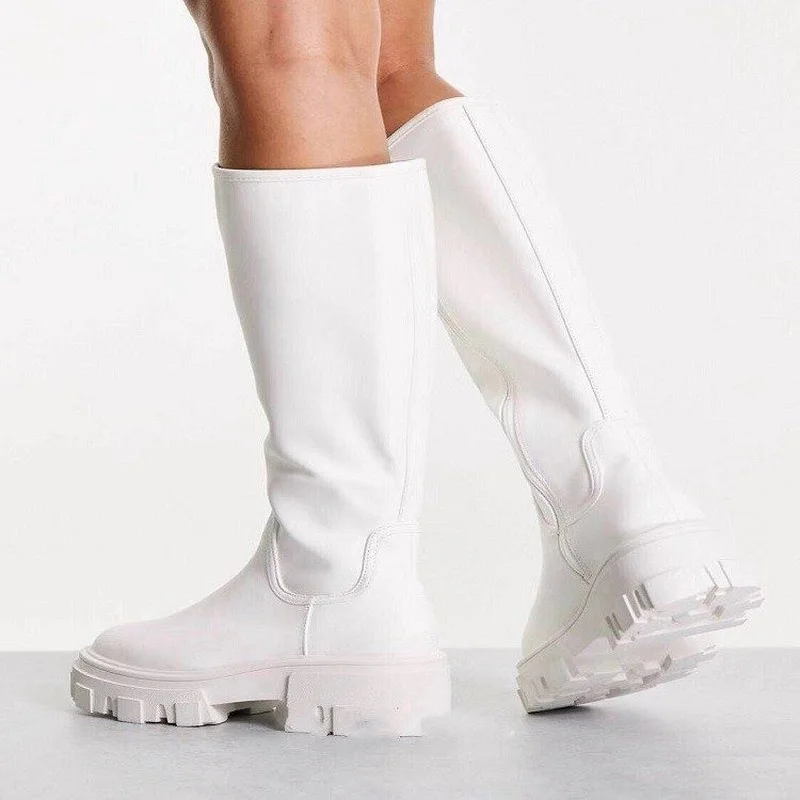 Ботинки женские из искусственной кожи, на толстой подошве, с круглым носком, белые, повседневные, 2021
