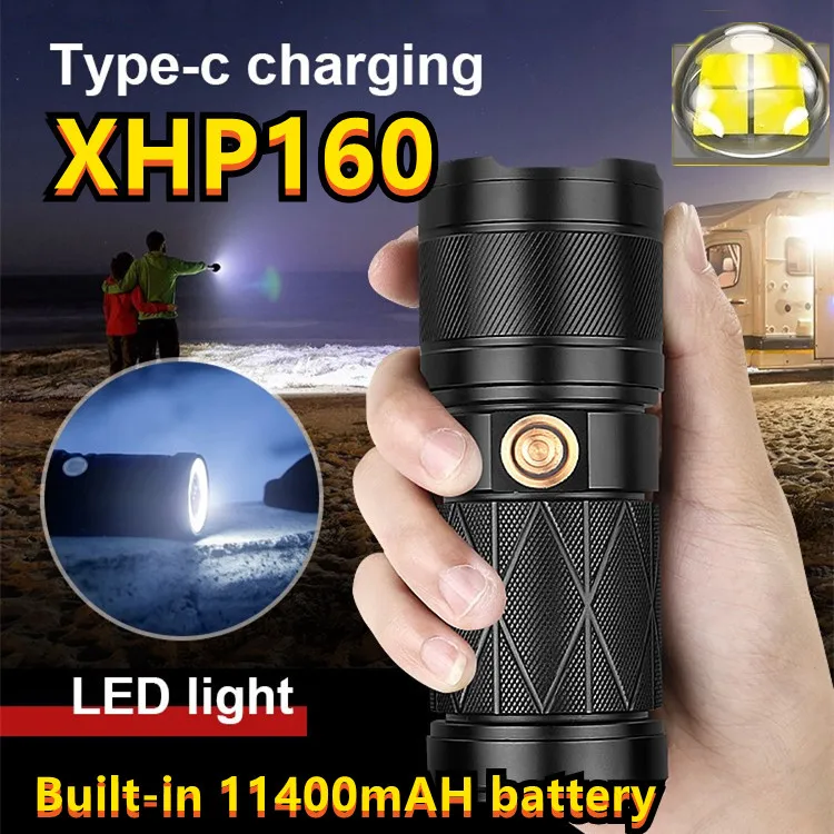 Мощный светодиодный фонарик XHP160, встроенный 11400 мАч, перезаряж...