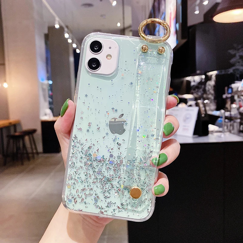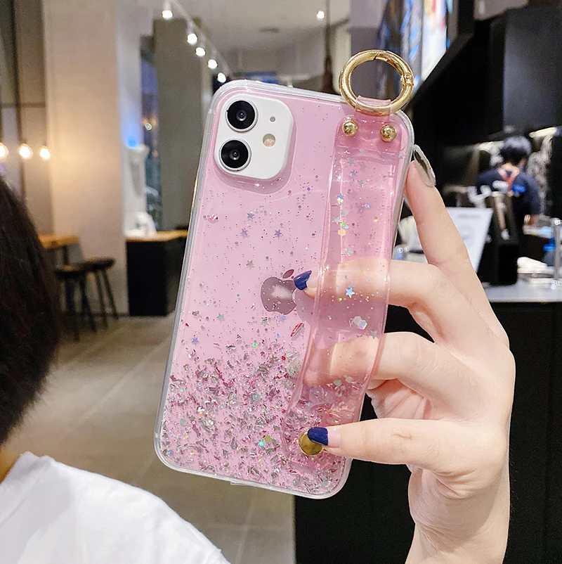 Блестящий блестящий чехол для Xiaomi Mi 11 Lite 5G 10T 9 SE Poco X3 NFC F3 Redmi 9T 9A 9C Note 10 Pro Max 9 S 8 с ремешком на запястье и подставкой