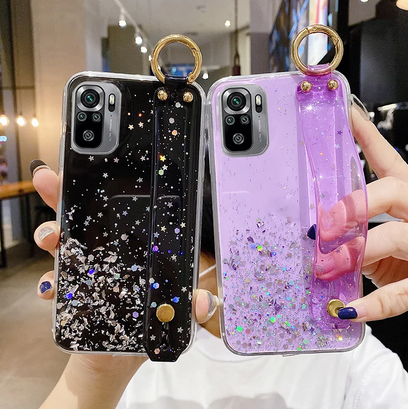 Блестящий чехол для Xiaomi Mi 11 Lite 5G 10T 9 SE Poco X3 NFC F3 Redmi 9T 9A 9C Note 10 Pro Max 9 S 8, чехол-подставка с ремешком на запястье