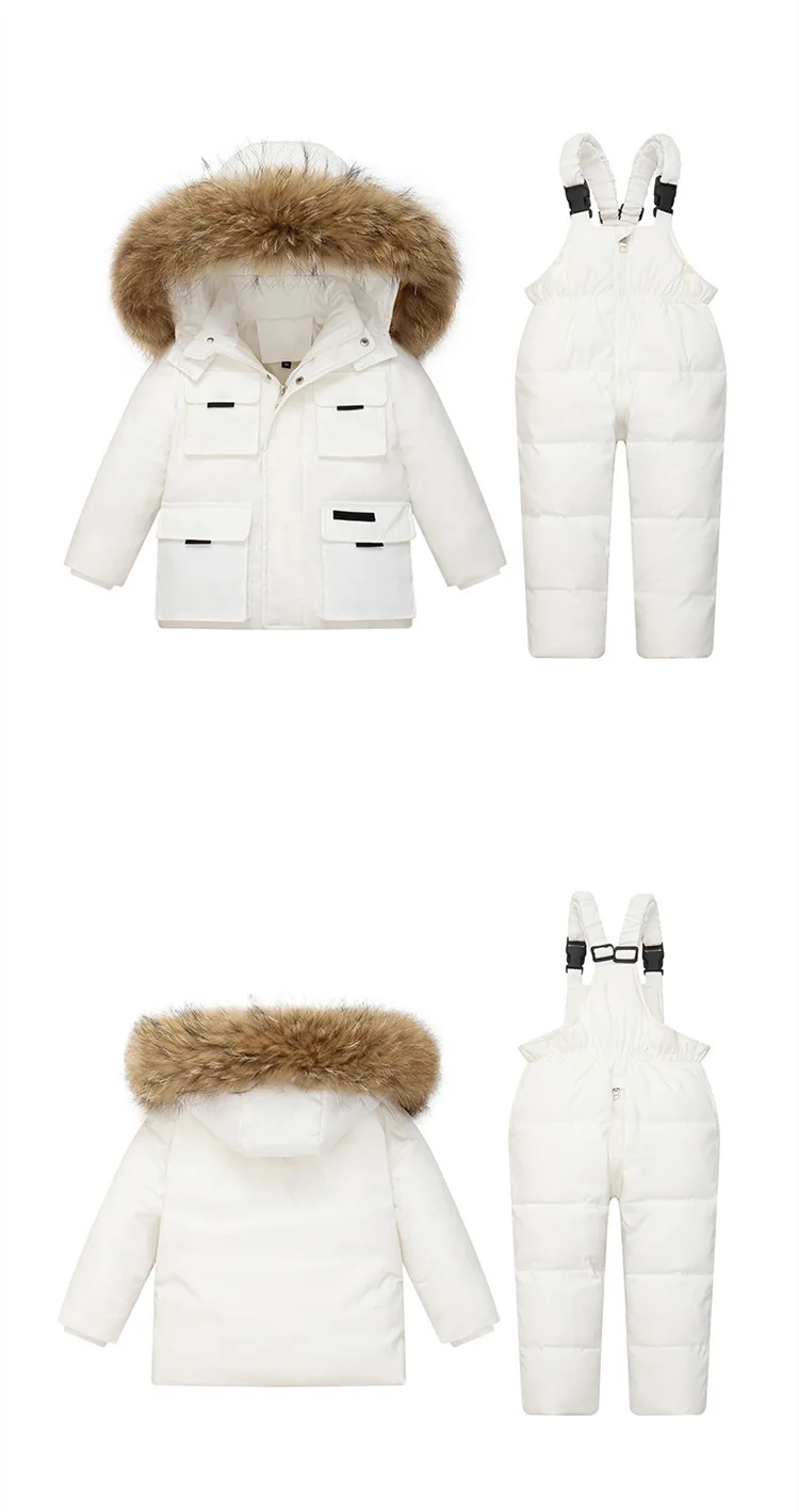 Комплекты одежды для детей от-30 2022 г. Детская зимняя куртка-пуховик 90% Одежда для маленьких девочек Теплые Комбинезоны пальто-парка для маленьких мальчиков натуральный мех
