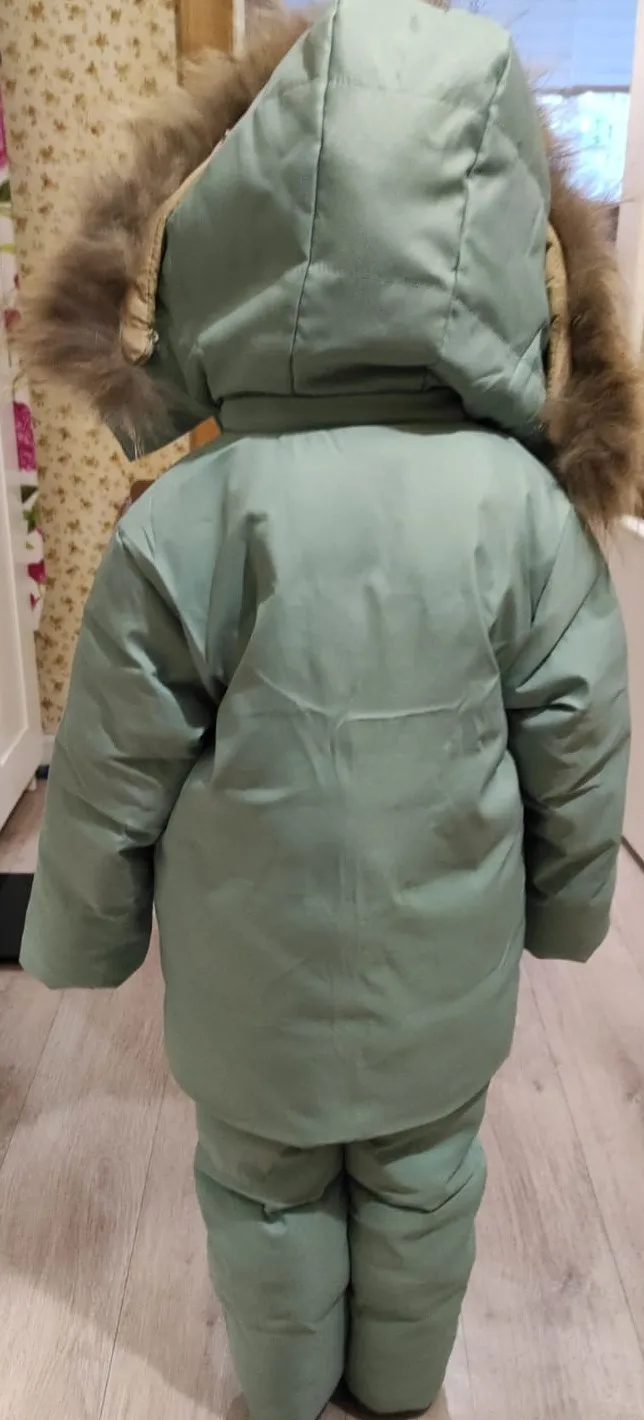 костюм понравился очень,хорошее качество,швы ровные,водоотталкивающая ткань. на рост 82,брала размер 90(18-24) на вырост,думаю на 2 зимы хватит. конечно не очень красиво крепится опушка,но я думаю мы будем без нее носить. рекомендую к покупке.продавец заказ отправлял долго только,но ответил быстро.