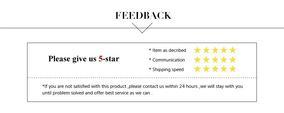 ** Если у вас возникли какие-либо проблемы при получении посылки, пожалуйста, свяжитесь с нами, прежде чем оставлять нейтральные или негативные отзывы, мы дадим вам удовлетворительное решение для разрешения любого спора.