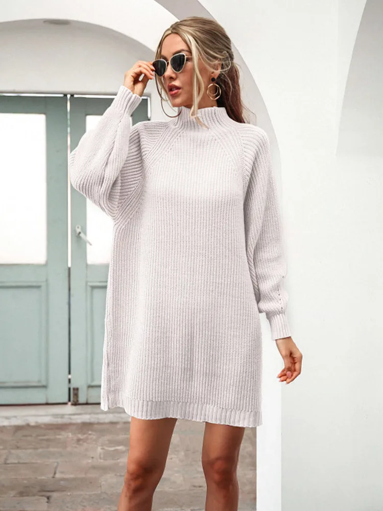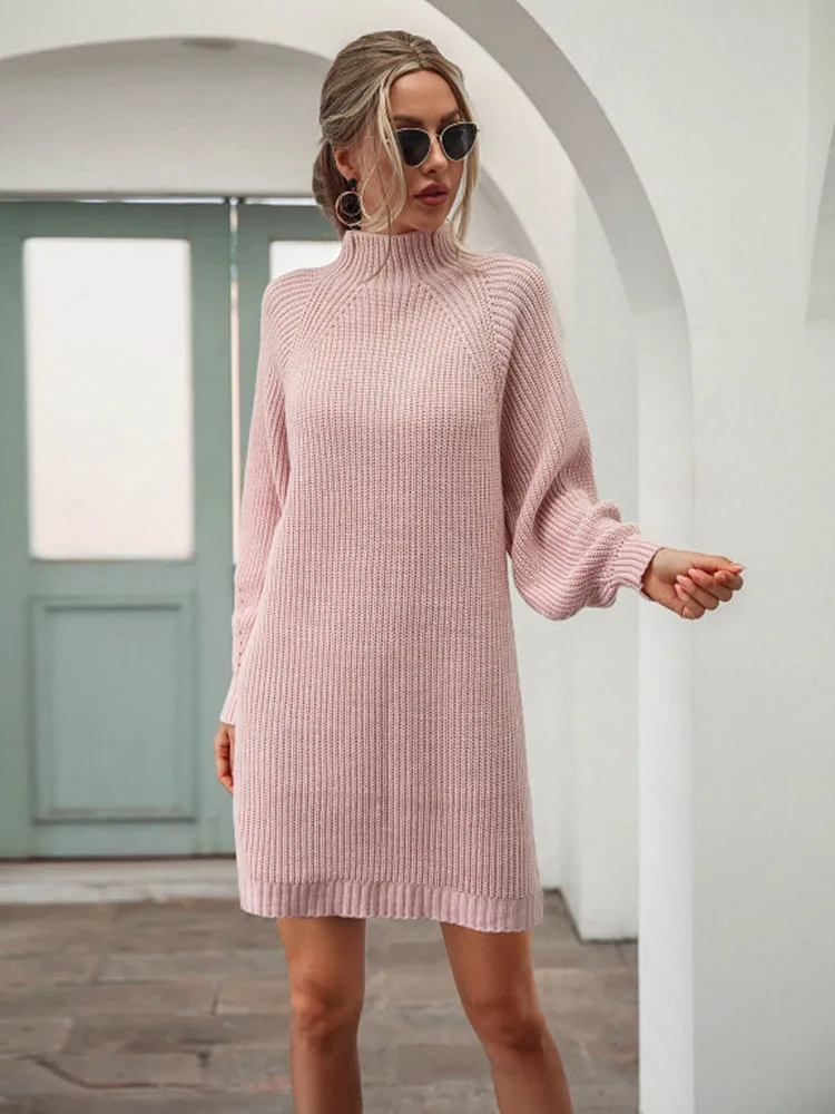 Платье-Свитер LOGAMI с высоким воротником, однотонное свободное пов...
