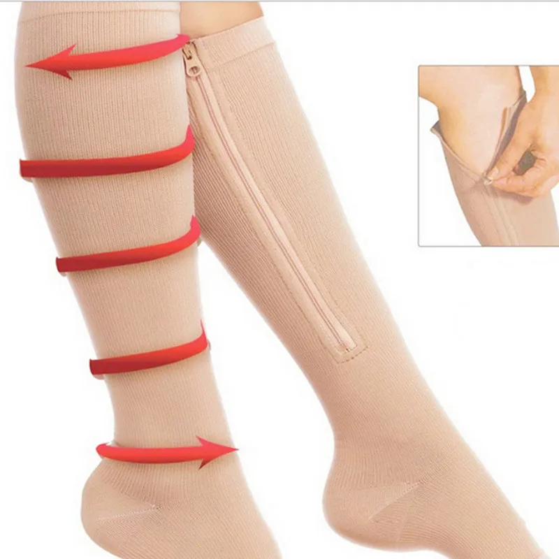 Носки компрессионные на молнии для мужчин и женщин, модные облегающ...