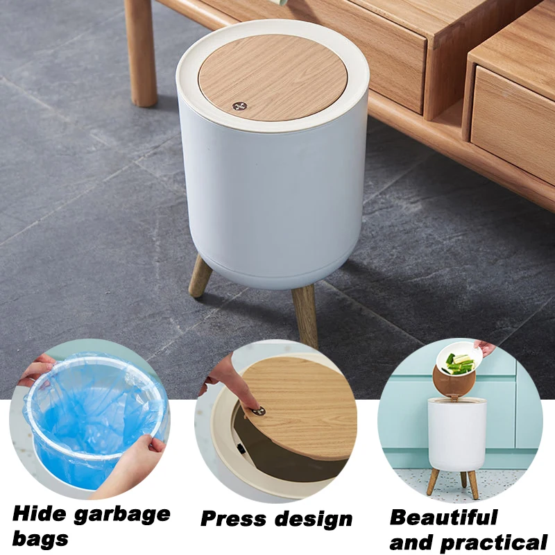 Креативная мусорная корзина с высокой ножкой, круглая мусорная корзина, мусорная корзина для ванной и кухни с крышкой для пресса, нескользящий коврик