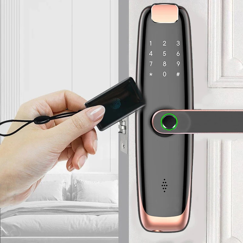Дверной замок TUYA с Wi-Fi и магнитной картой, дистанционное управление, разблокировка по отпечатку пальца, временный пароль, нормально открытый режим, домашний