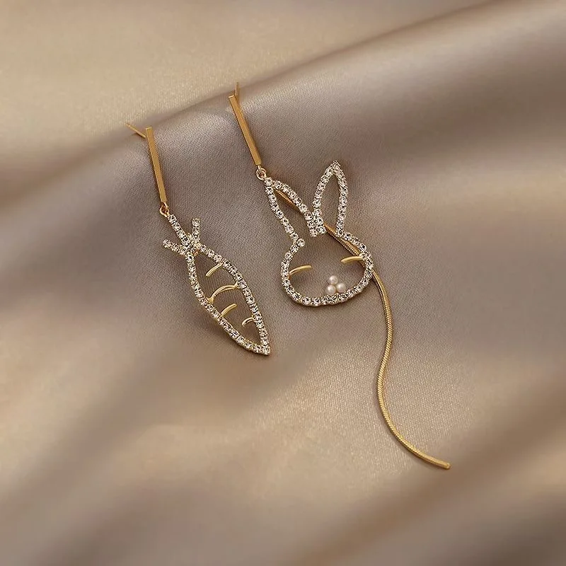 Асимметричные серьги в виде кролика из серебра 925 пробы с жемчугом...