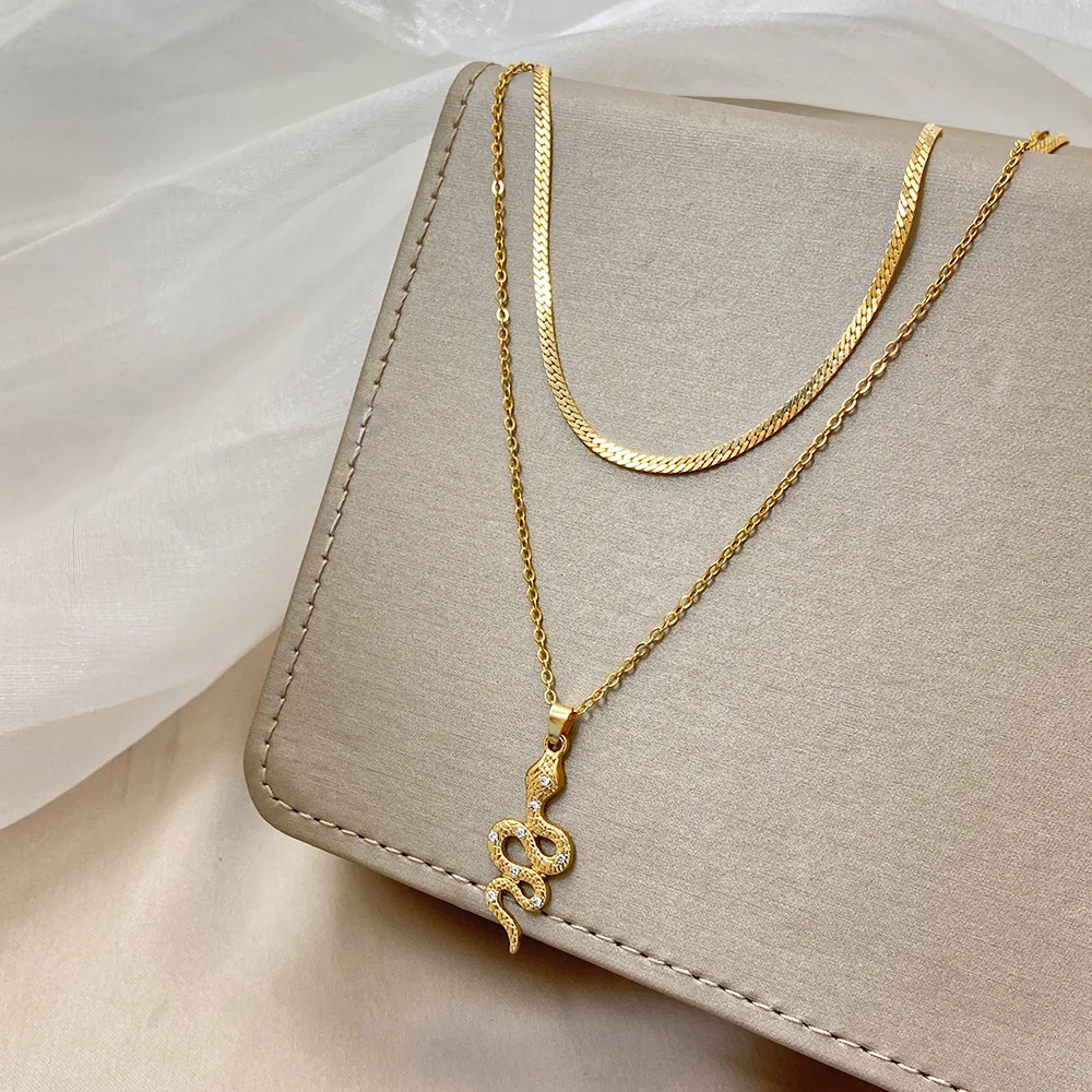 Многослойное ожерелье с подвеской в виде змеиной монеты в стиле панк для женщин, винтажное эффектное ювелирное изделие, ожерелье для девушек