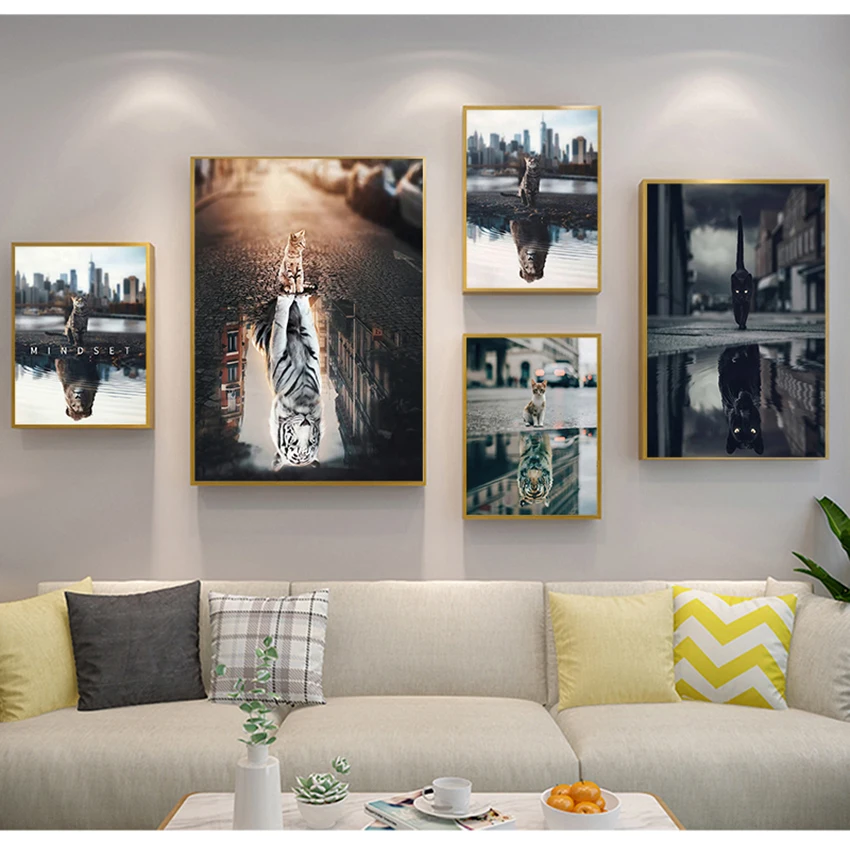 Настенная Картина на холсте с изображением Льва или кота Тигра в сердце, декоративные картины на стену для современной гостиной, украшение для дома