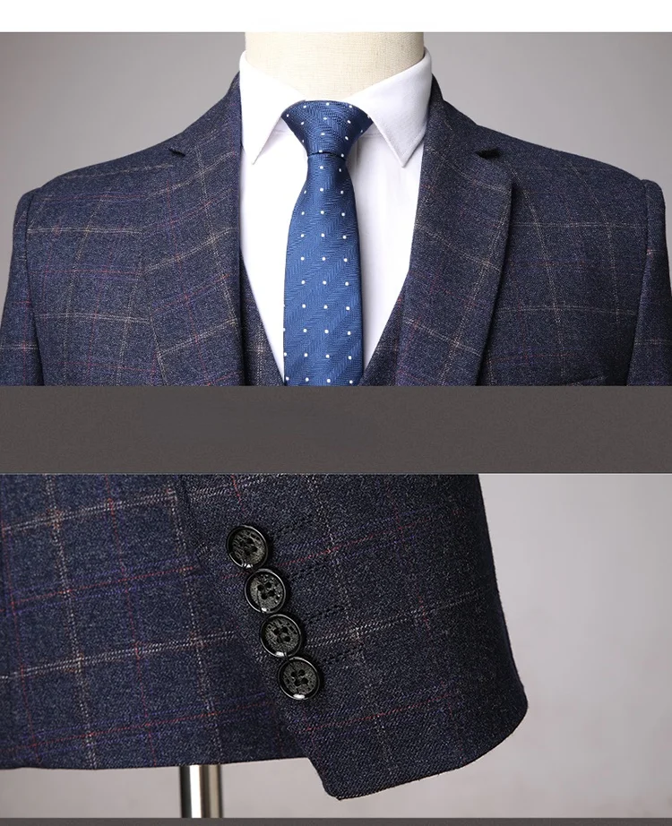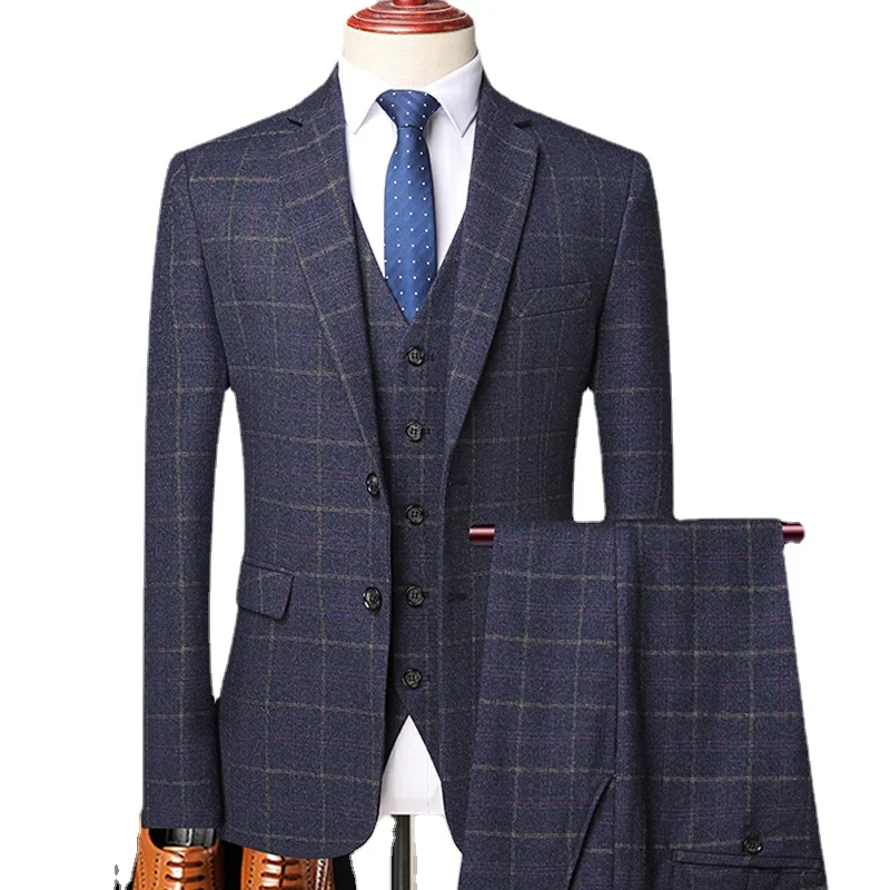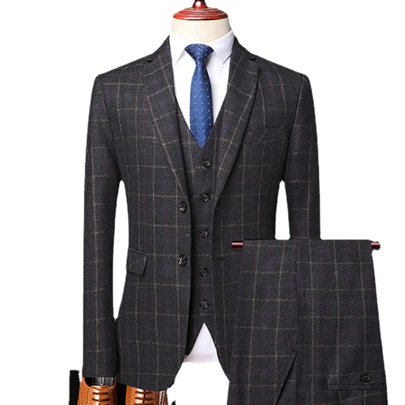 (Пиджак + жилет + брюки) Классический Клетчатый твидовый костюм для мужчин приталенный свадебный смокинг для жениха блейзер мужской деловой комплект из 3 предметов 2022