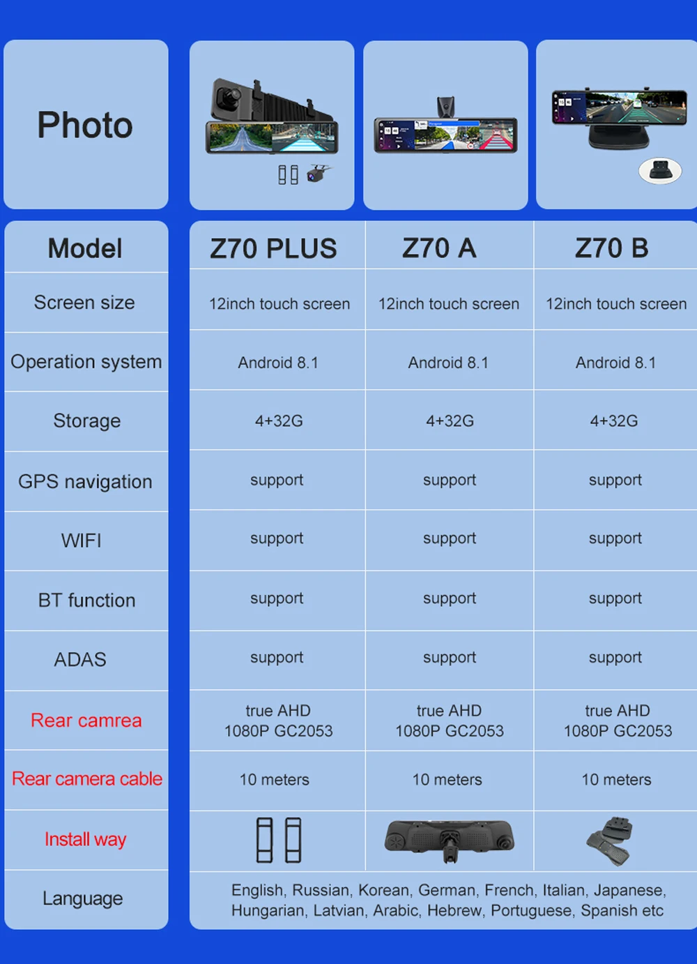 Пожалуйста, обратите внимание, этот Z70 plus с истинной задней камерой AHD1080P ночного видения.