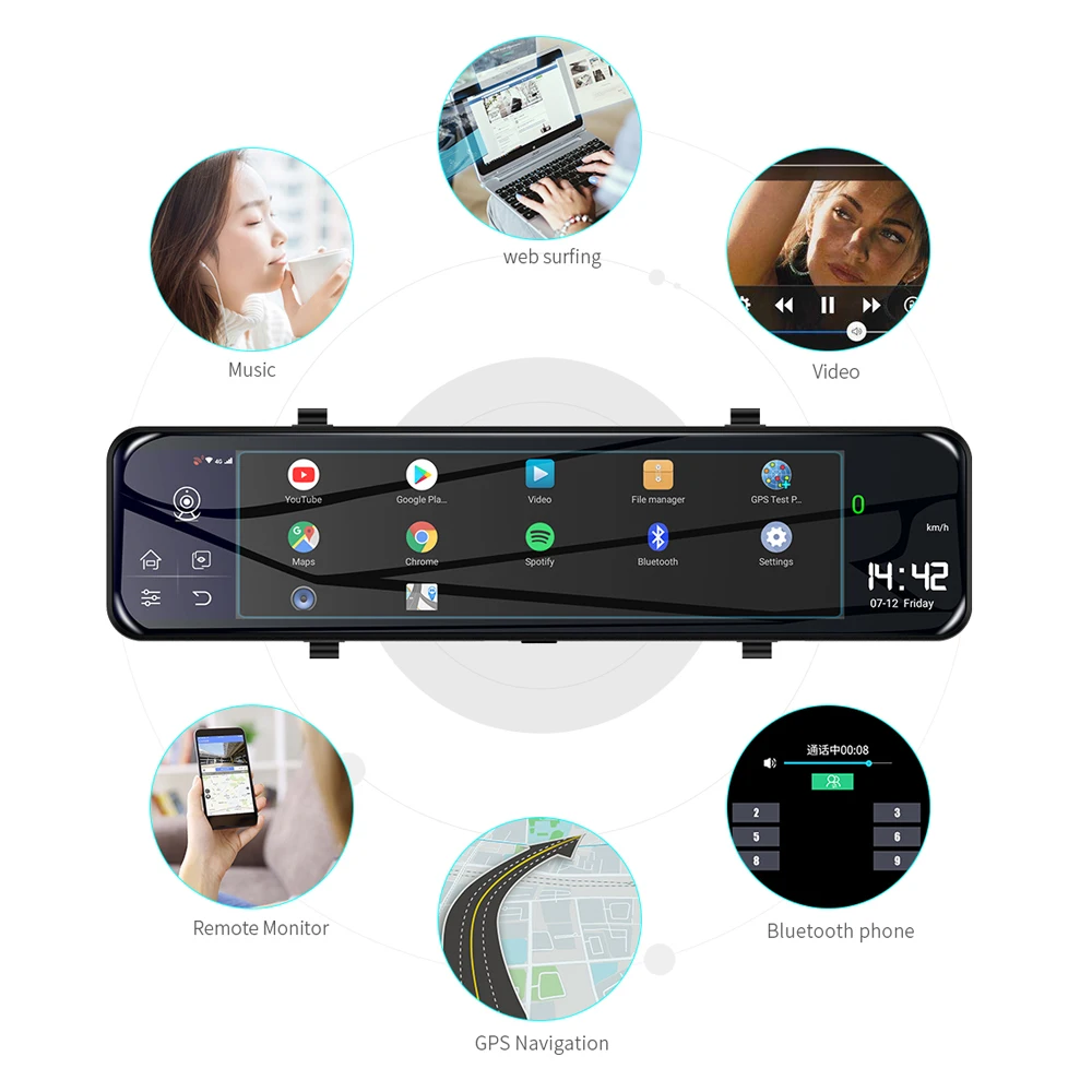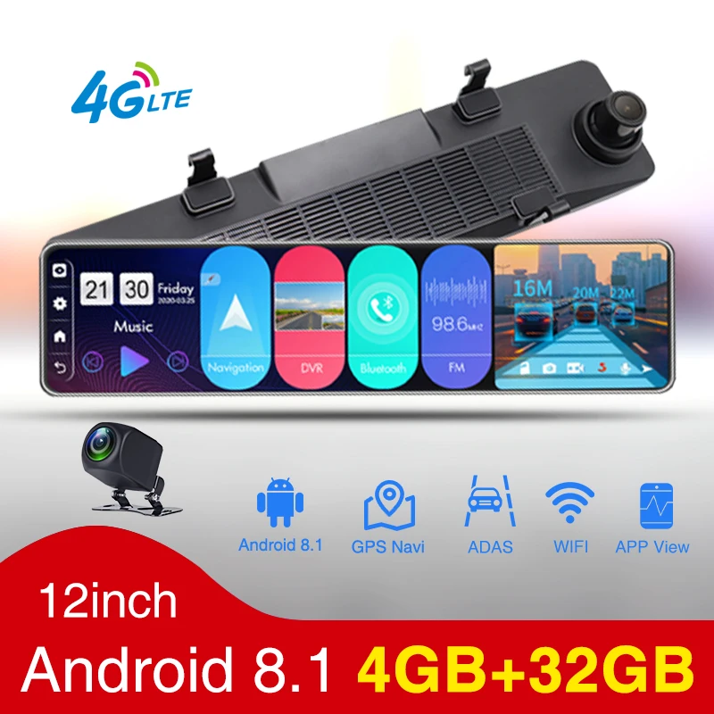Автомобильный видеорегистратор, 4 + 32 ГБ, Android 8,1, двойная камера, AHD1080P, Wi-Fi, GPS-навигация, приборная панель, автомобильная камера, живое видео, 4G, Зеркальные автомобильные видеорегистраторы