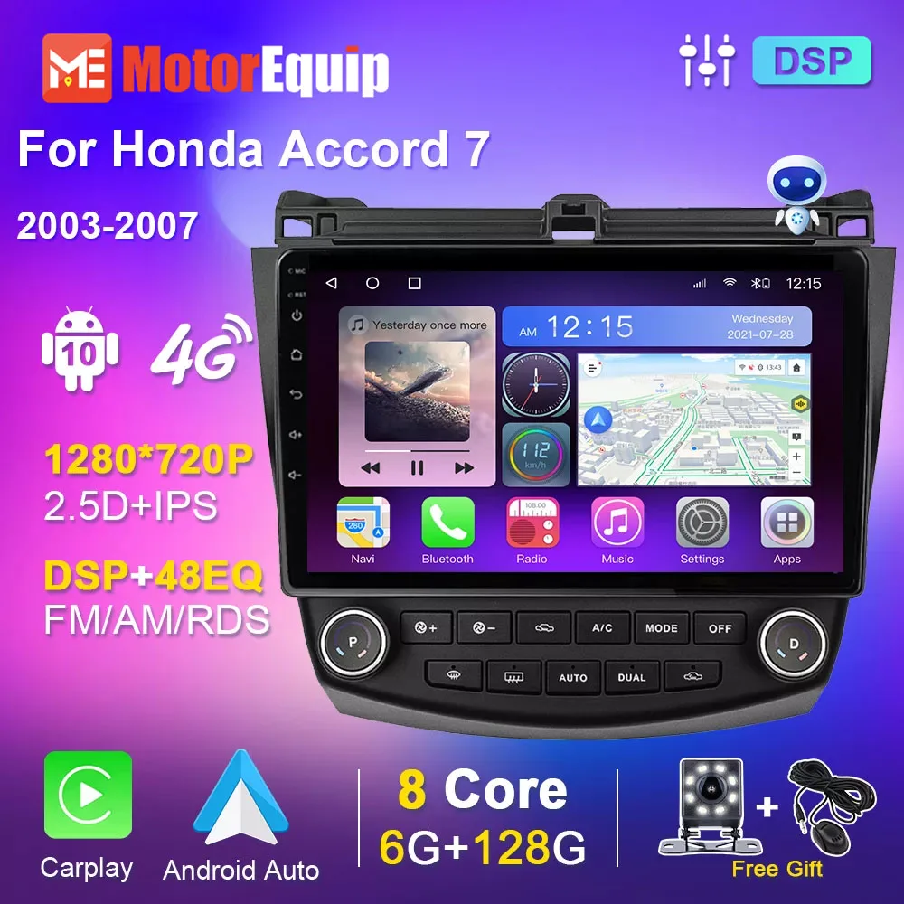 Автомагнитола для Honda Accord 7 128-2003, 6G, 2007G, Android 10,0, No 2 din, мультимедийный плеер, Carplay, DVD, GPS, DSP, камера, аудио, для автомобилей