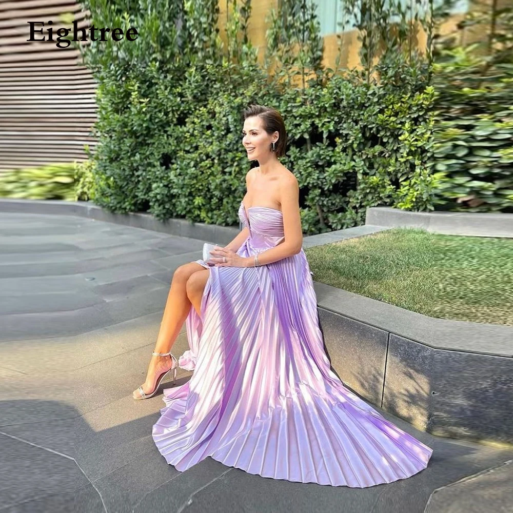 Платье для выпускного вечера Фиолетовое Атласное плиссированное пла...