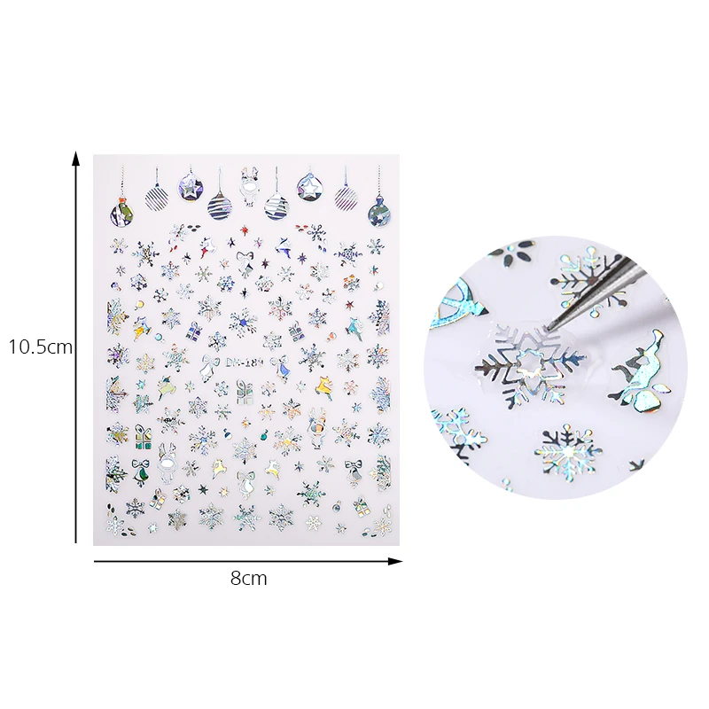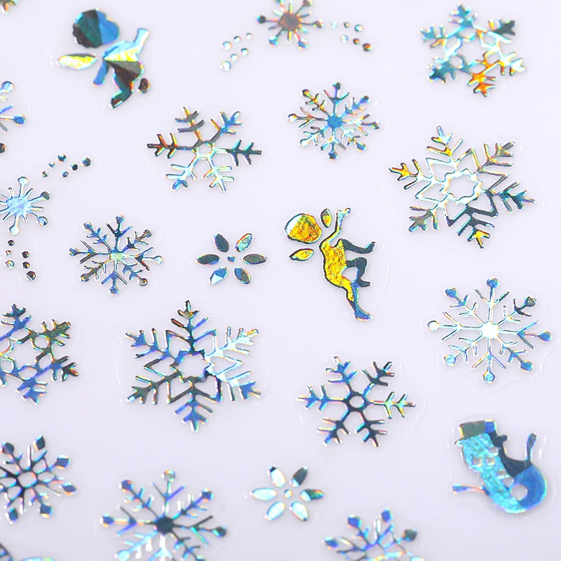 Переводные 3D-Наклейки для ногтей, радужные, золотистые, серебристые, снежинки, самоклеющиеся, 1 лист
