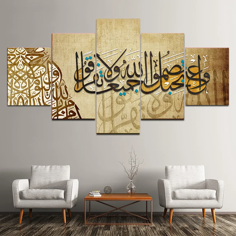 5 панелей, Абстрактная Картина на холсте Surah Ikhlas арабский Коран и принты для мусульманской гостиной, Декор без рамки