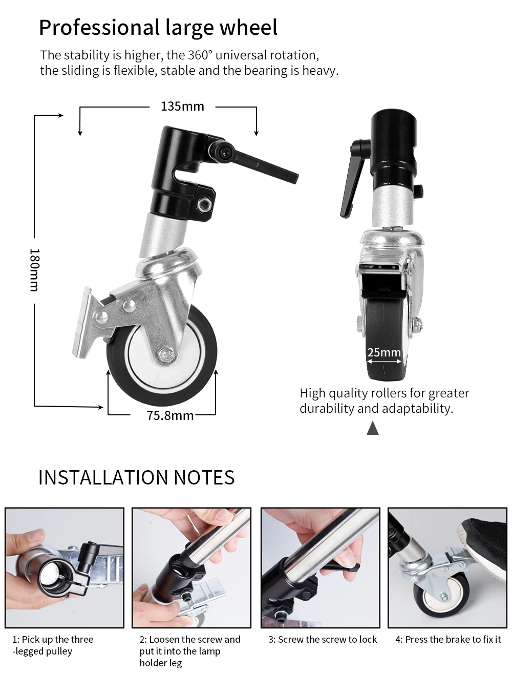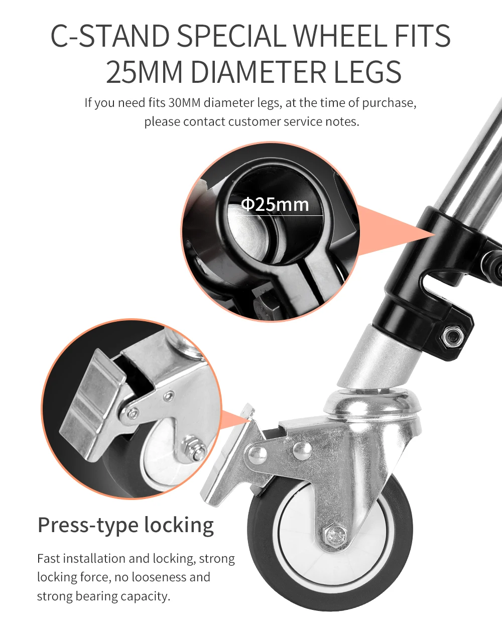 Feature1SH Heavy Duty Stainless Steel C-Stand Special Wheel Accessories