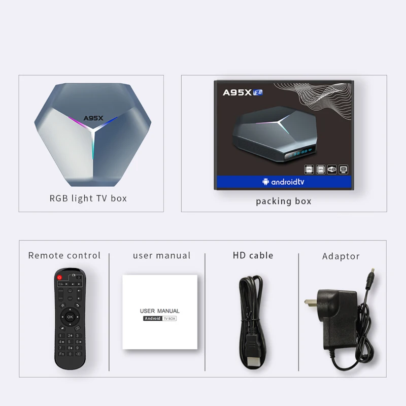 Приставка Смарт-ТВ A95X F4, Amlogic S905X4, Android 10, 8K, RGB-подсветка, 4 + 64 ГБ, 8 + 16322021 ГБ