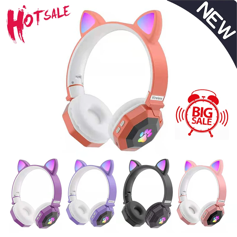 Bluetooth-наушники с RGB-подсветкой, с кошачьими ушками, Bluetooth ...