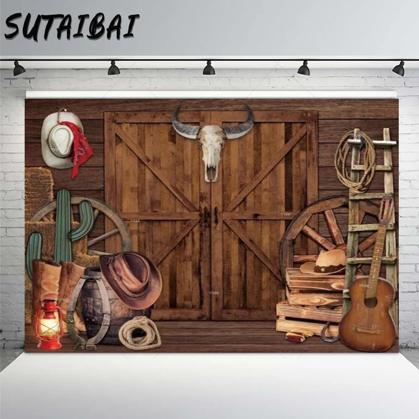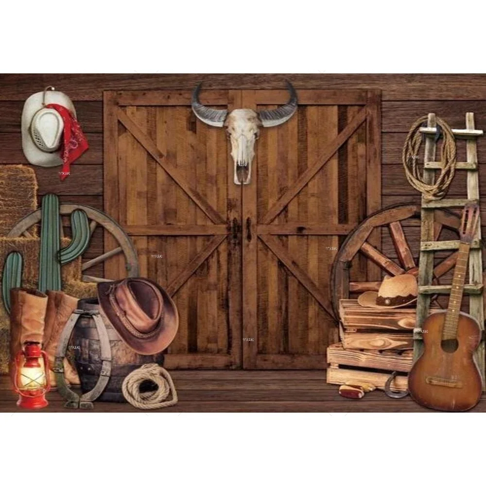 Фон для фотосъемки в Западном ковбойском стиле с деревенской фермой и деревянной дверью сарая фон для детского дня рождения Декор для вечеринки фон для фотосъемки