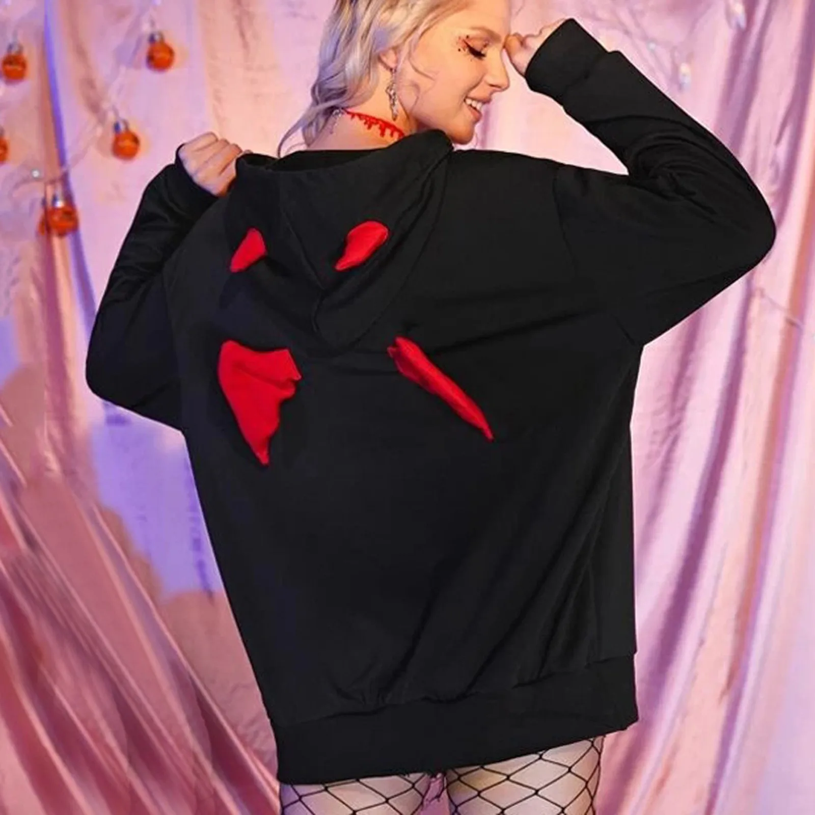 Худи женское в готическом стиле, Свитшот в стиле панк, худи с принтом дьявольских рогов, пуловер в стиле оверсайз с надписью, уличная одежда, худи в стиле Харадзюку