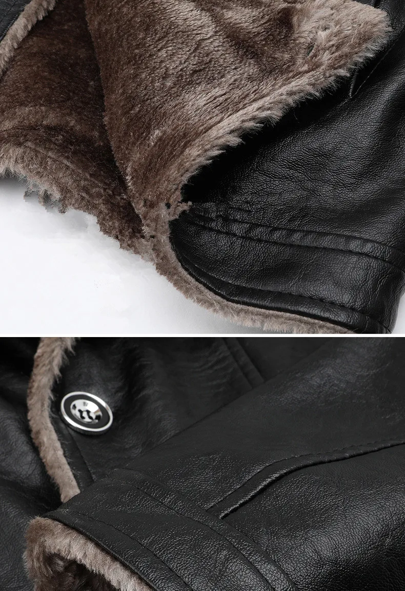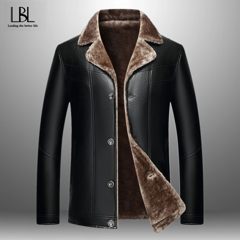 Новинка 2022, мужские толстые кожаные куртки, мужские модные куртки с воротником из искусственного меха, ветрозащитные теплые пальто, Мужская брендовая одежда, зима-осень