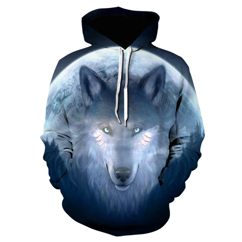Мужская толстовка с капюшоном в стиле Харадзюку, с 3D-принтом волка...