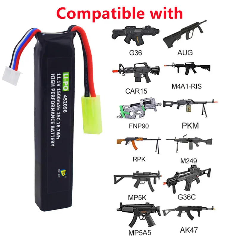 3S 11,1 V 1500mAh 25C литиевая батарея с мини разъемом Odamiya подходит для Airsoft G36C, M4A1-RIS, M4A1, CAR15, MP5A5, M249, MP5K, MC51, FNP90, AK47, G3A4, g36 обновление или модификация и другие серии игрушечного электрического пистолета пневматические пистолеты винтовки