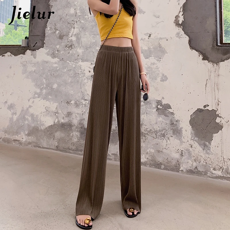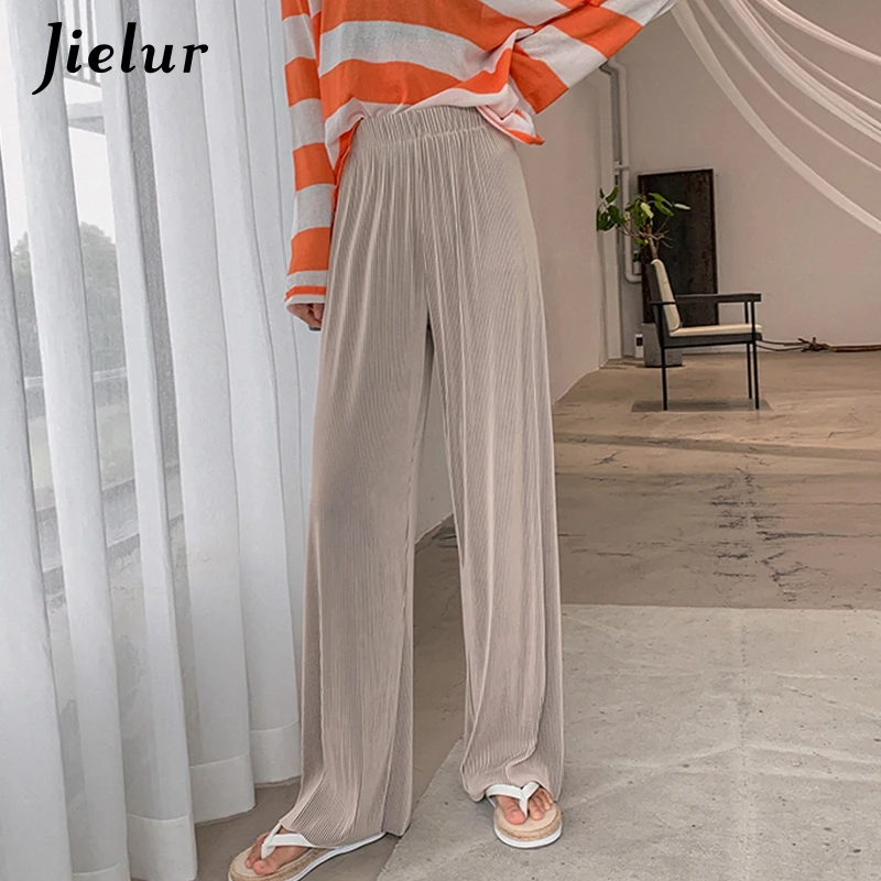 Jielur корейские плиссированные брюки с высокой талией женские тонкие простые свободные прямые женские брюки серые темно-синие широкие длинные брюки