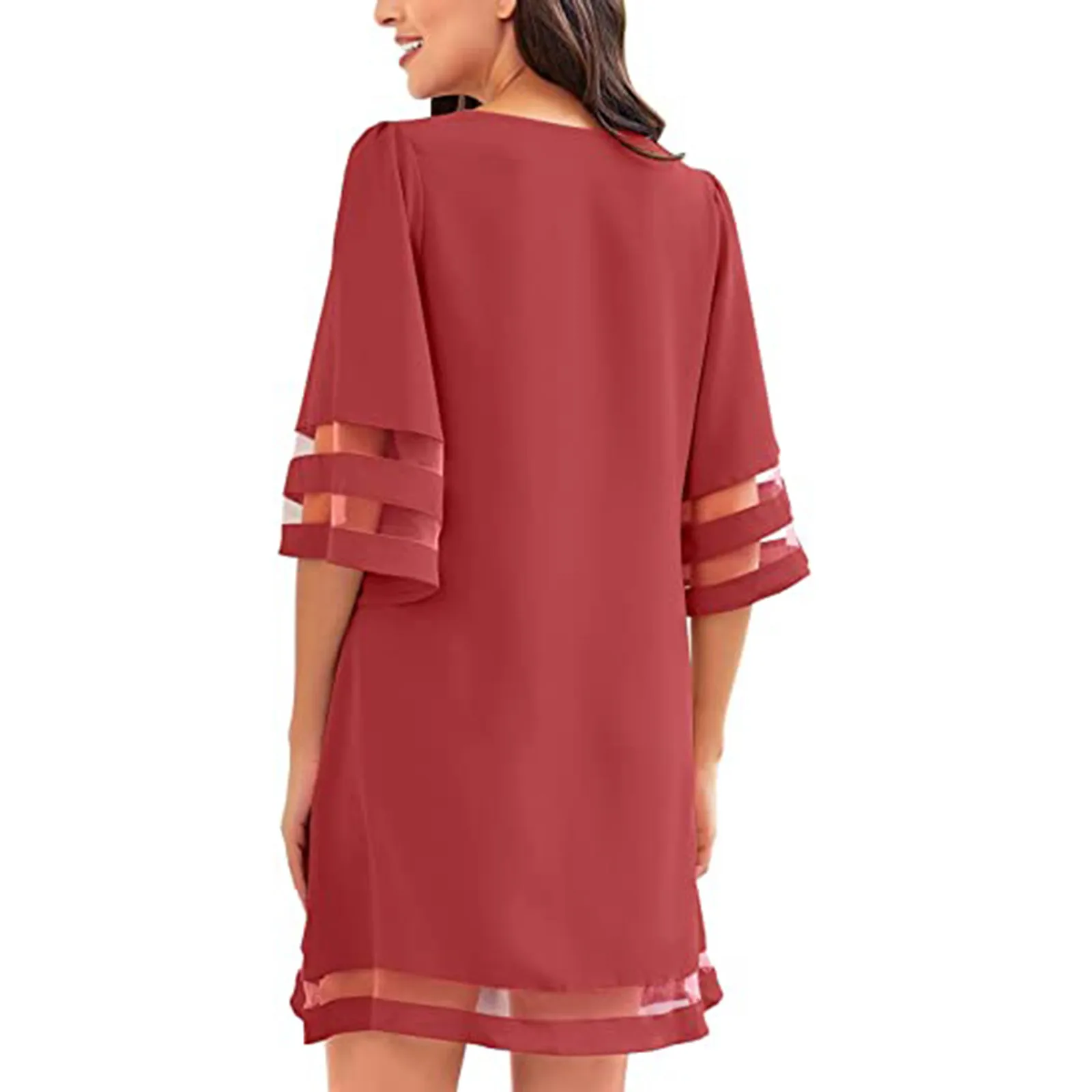 Сетчатые лоскутные платья выше колена с рукавом-колоколом 34, свобо...
