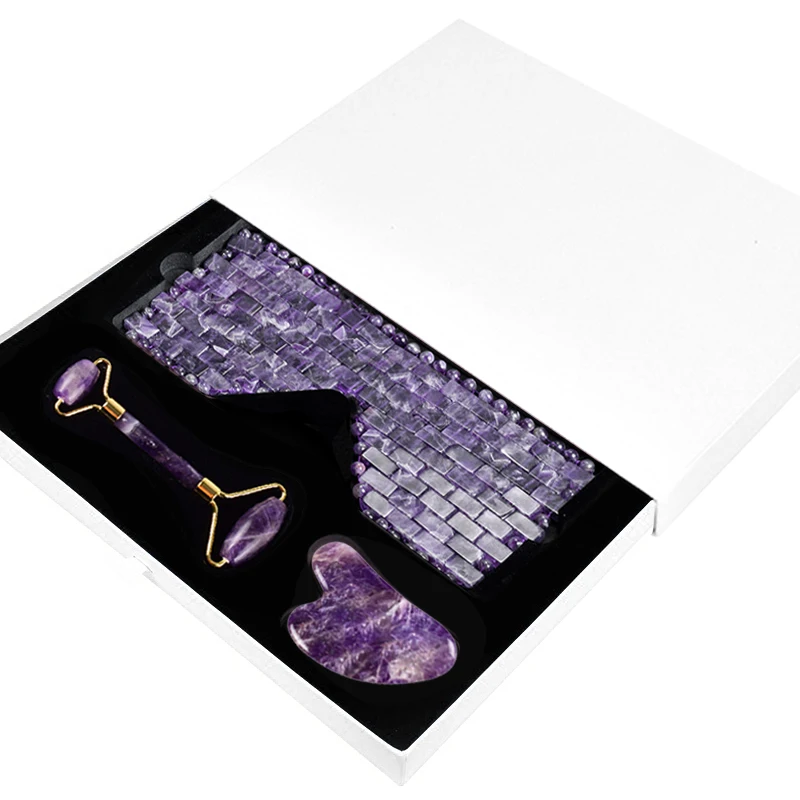 Маска с аметистовым камнем для глаз, роликовая маска для лица нефрит для массажа, набор скребков для гуаша, маски для сна с фиолетовыми кристаллами, массажер для лица, набор для ухода за кожей