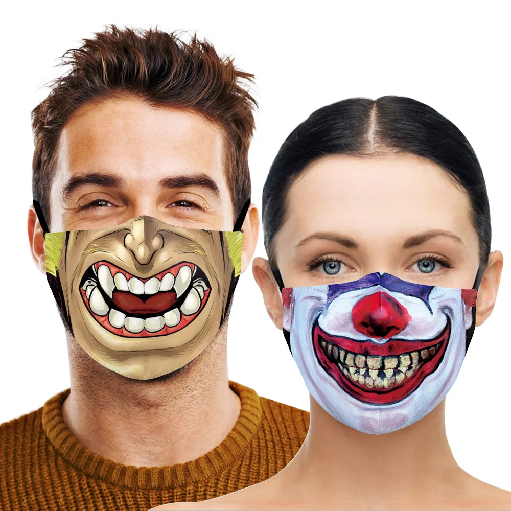 Маски для лица на Хэллоуин с ужасным принтом гримаса для мужчин жен...