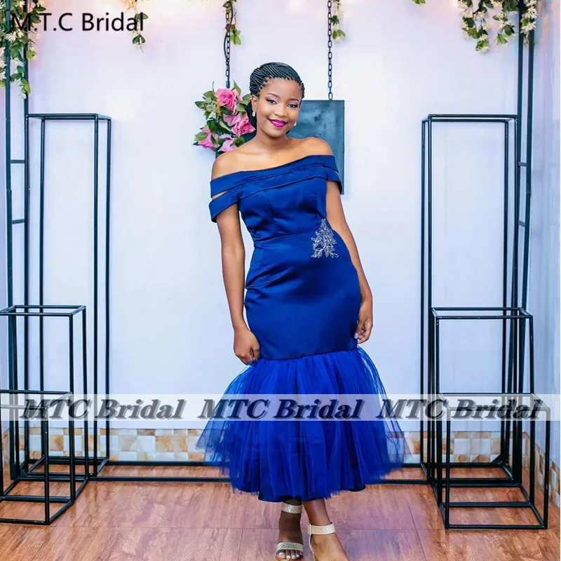 Короткие платья подружек невесты Королевского синего цвета, оптовая продажа 2021, короткие черные платья русалки с открытыми плечами для подружек невесты, свадебные платья для девушек